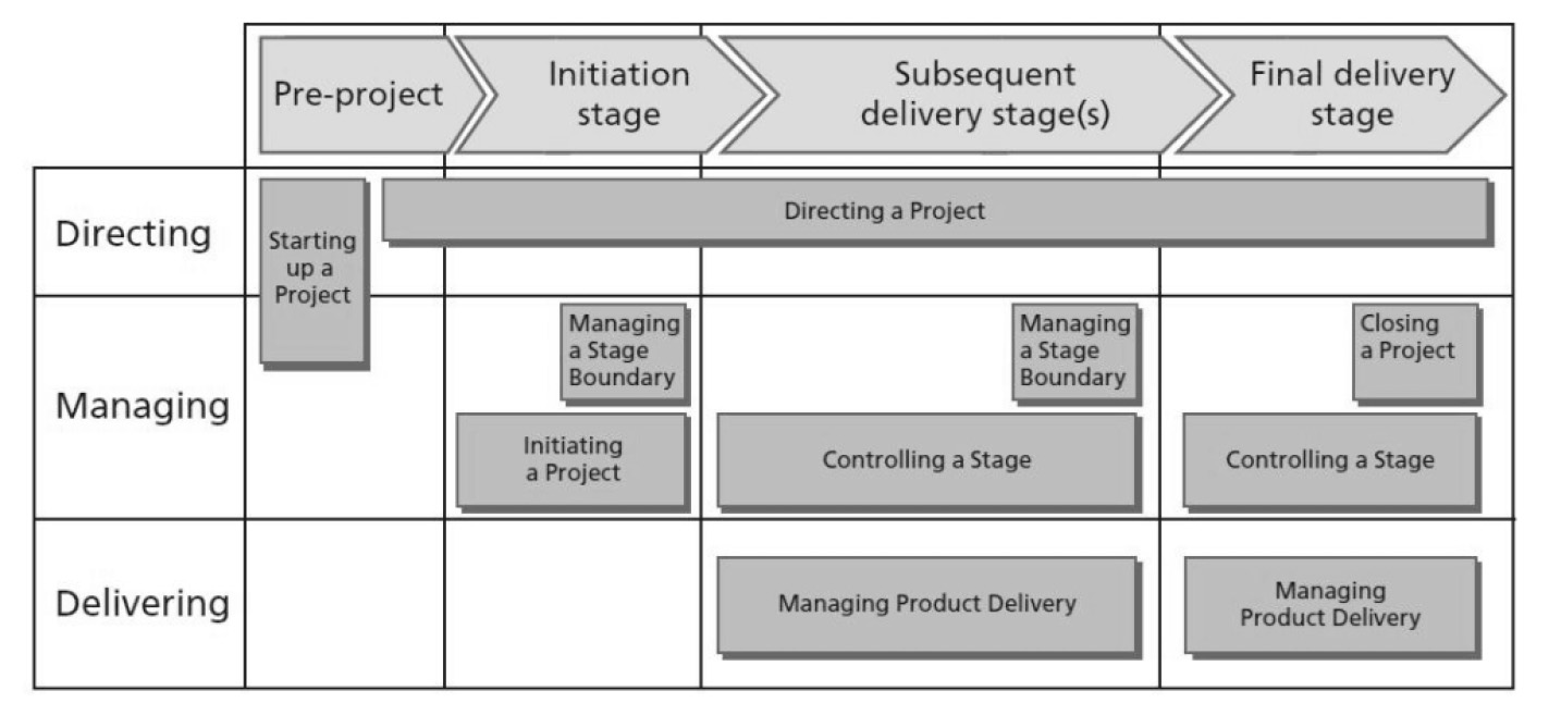 Modelo de procesos de PRINCE2 (Fuente: AXELOS)