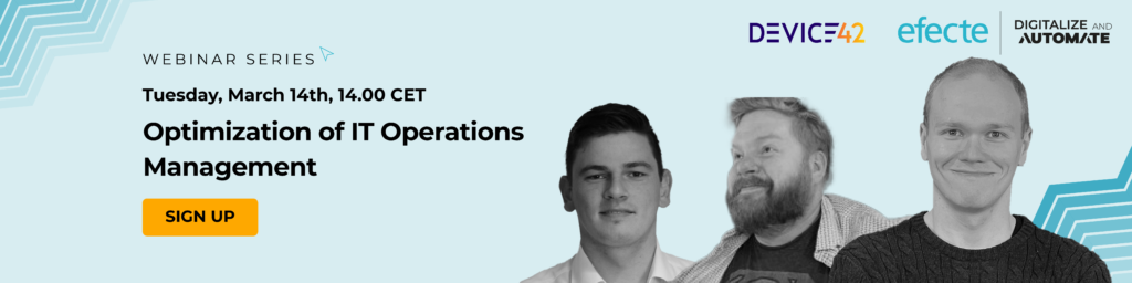 No te pierdas el próximo Webinar de Efecte junto a Device 42. Compartirán todo lo que necesitas saber para planificar eficientemente tus procesos de migración o actualización de versiones, reducir los tiempos de inactividad y mejorar los niveles de servicio. Además, verás cómo puedes utilizar tu stack tecnológico como un habilitador de negocios para satisfacer las necesidades de las empresas.